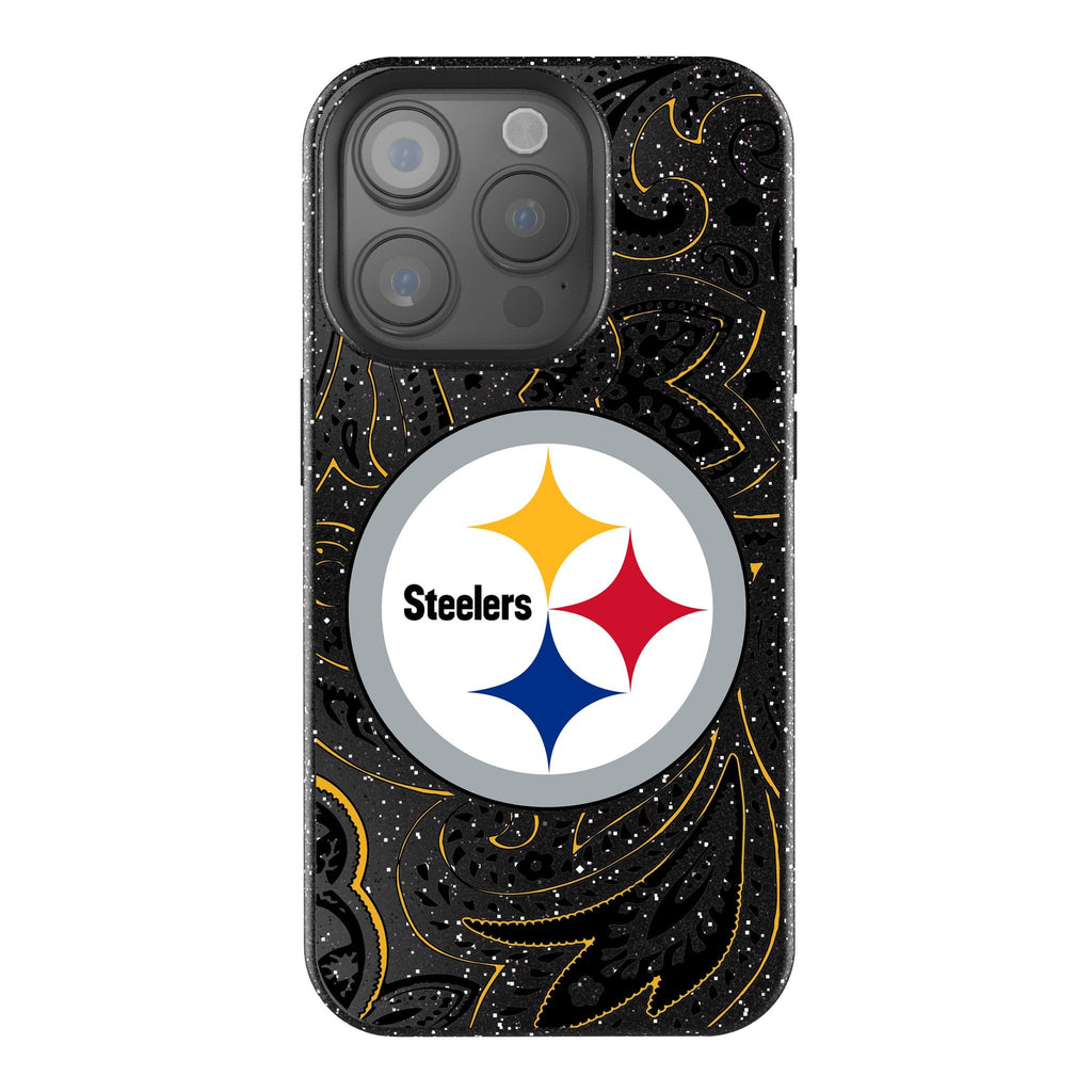 This black, sparkly case with a microfiber interior is officially-licensed and MagSafe compatible. It provides fun and protection to your cell phone. Designed and decorated by Keyscaper in Tualatin, Oregon, USA., this case is exciting and durable. It has precise speaker and port cutouts, easy press buttons, and a raised lip around the screen and camera lens to provide extra protection against accidental bumps and scratches.