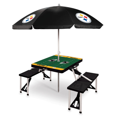 If you like the idea of a pop-up picnic, the Picnic Table & Umbrella Set is the table for you with its durable frame, molded polypropylene basket weave seats and solid ABS plastic tabletop, umbrella hole, included matching umbrella, and highly-portable and compact fold-away design! This is the outdoor table to rule them all!