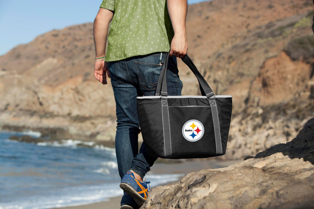 From farmers markets to the concert, from the mountains to the beach, the Pittsburgh Steelers Topanga Cooler Tote Bag is your all-in-one grocery bag, insulated picnic tote, and soft sided cooler. With its durable polyester canvas outer construction and heat-sealed water-resistant PVC interior liner, it’s ideal for a picnic lunch, cold groceries, or a tailgate’s worth of beer. The 24-can capacity, large external pocket, and carrying straps make this the perfect insulated cooler bag for food, beverages, wet swimsuits and towels - anything and everything your travellin’ heart desires.