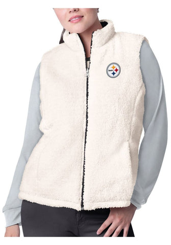 This Pittsburgh Steelers Women's Reversible Vest will have you ready for the next tailgate. Stay warm in this Pittsburgh Steelers Women's Reversible Sleeveless Vest, which features a team logo on left chest.
