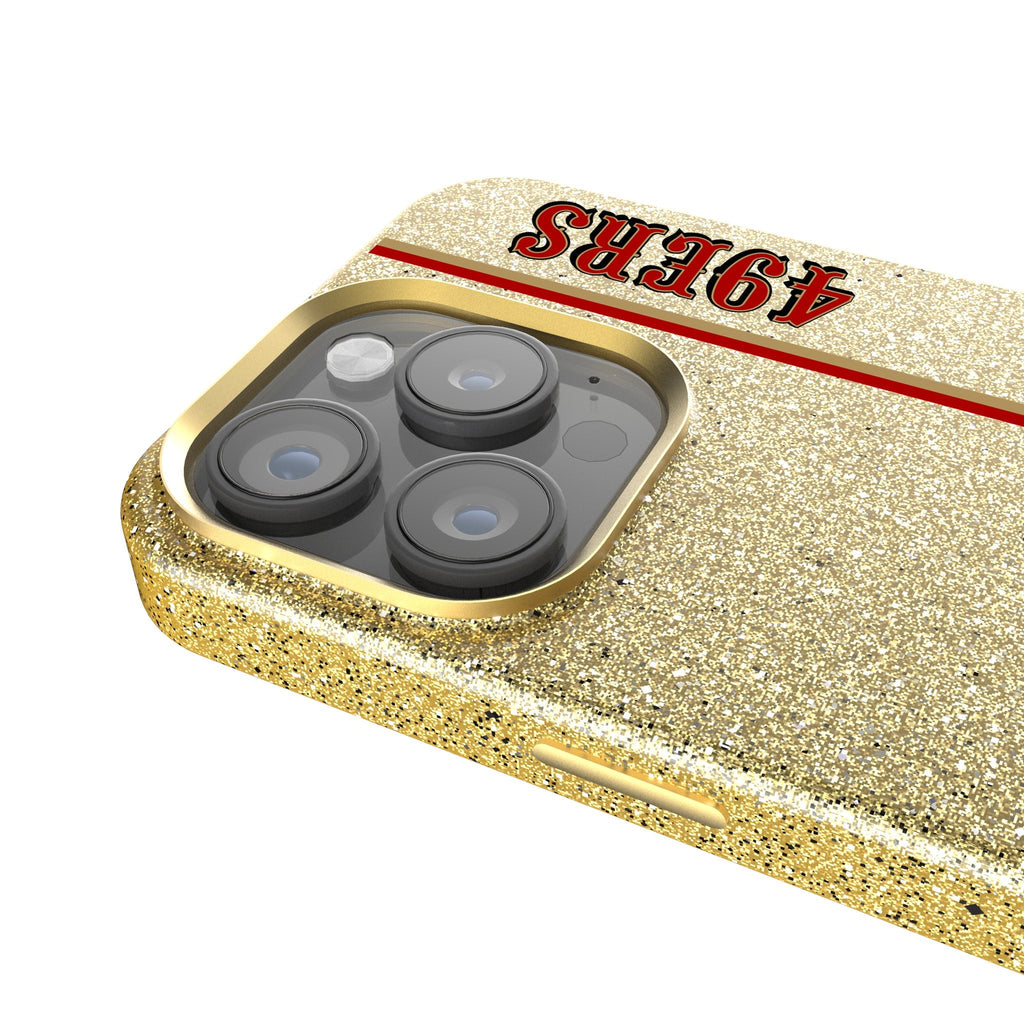This gold, sparkly case with a microfiber interior is officially-licensed and MagSafe compatible. It provides fun and protection to your cell phone. Designed and decorated by Keyscaper in Tualatin, Oregon, USA., this case is exciting and durable. It has precise speaker and port cutouts, easy press buttons, and a raised lip around the screen and camera lens to provide extra protection against accidental bumps and scratches.