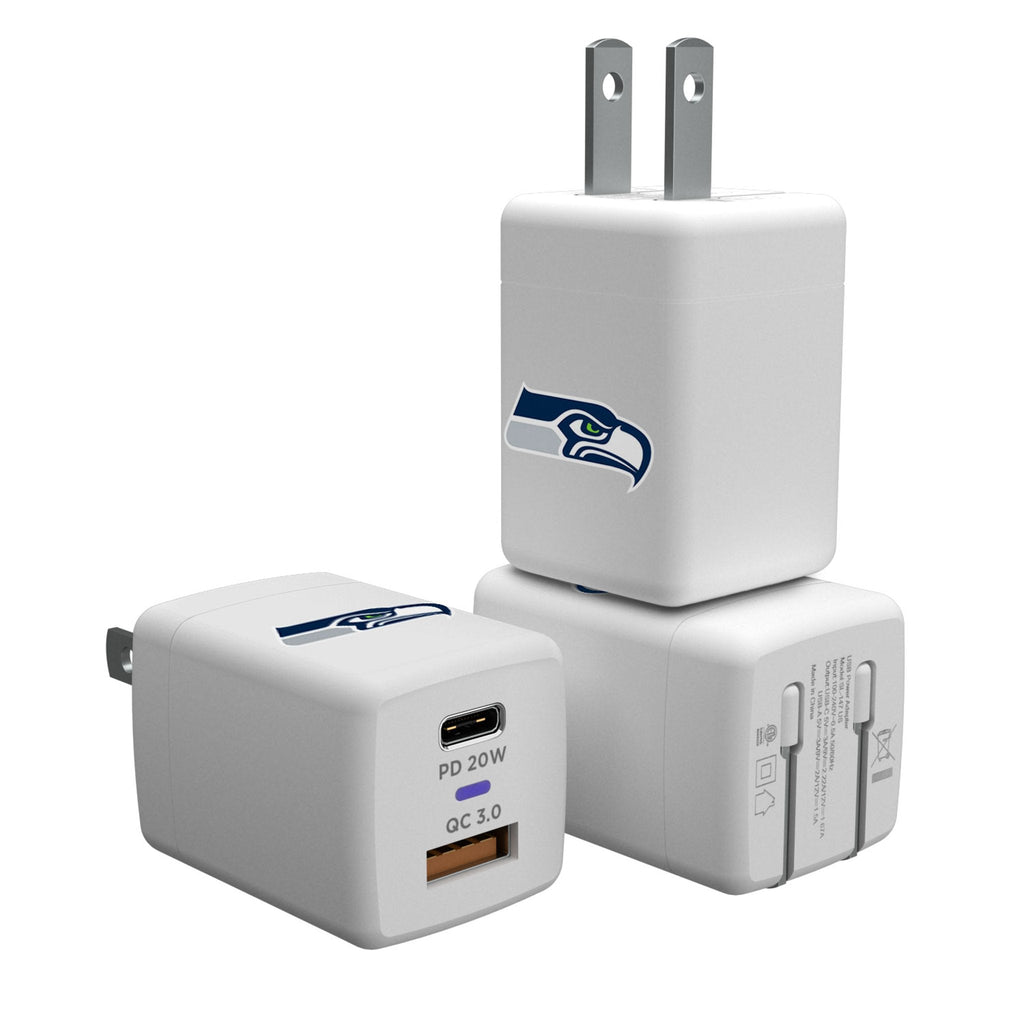 Officially licensed, ETL Listed, 20 Watt USB Charger has a USB A port and a USB C Port for dual charging and a compact design. With foldable prongs, it travels well in a suitcase, backpack or pocket. Designed and printed with your favorite characters or team by Keyscaper in Tualatin, Oregon USA.