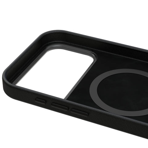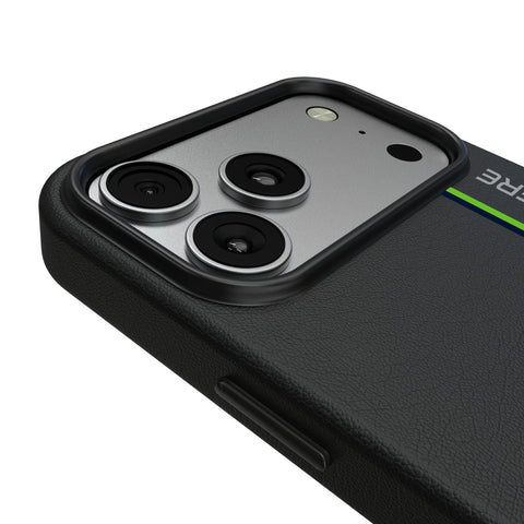 This stylish and practical case sports an officially licensed design and is MagSafe compatible. Ideal for fans, enthusiasts, and everyday users who want a slim, protective, and MagSafe compatible case. Premium black leatherette and anodized aluminum buttons ensure a comfortable grip and great tactile response. Precise speaker and port cutouts and integrated magnets optimize compatibility with accessories and wireless charging devices. It is drop-tested to 4.9 feet for a perfect balance between bulk and protection and is designed and decorated by Keyscaper in Tualatin, Oregon, USA.