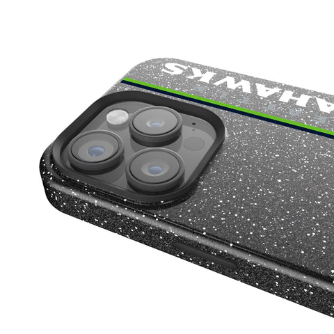 This black, sparkly case with a microfiber interior is officially-licensed and MagSafe compatible. It provides fun and protection to your cell phone. Designed and decorated by Keyscaper in Tualatin, Oregon, USA., this case is exciting and durable. It has precise speaker and port cutouts, easy press buttons, and a raised lip around the screen and camera lens to provide extra protection against accidental bumps and scratches.