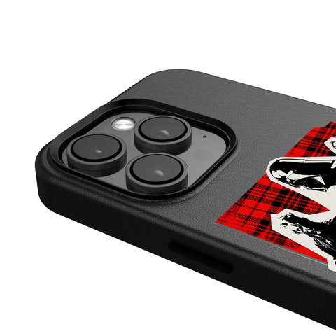 This premium black leatherette case sports an officially-licensed design and is MagSafe compatible. Designed and decorated by Keyscaper in Tualatin, Oregon, USA., this stylish cell phone case is a great way to show off your true fandom. Striking a great balance between bulk and protection, it is durable, has precise speaker and port cutouts, and is compatible with wireless charging devices.