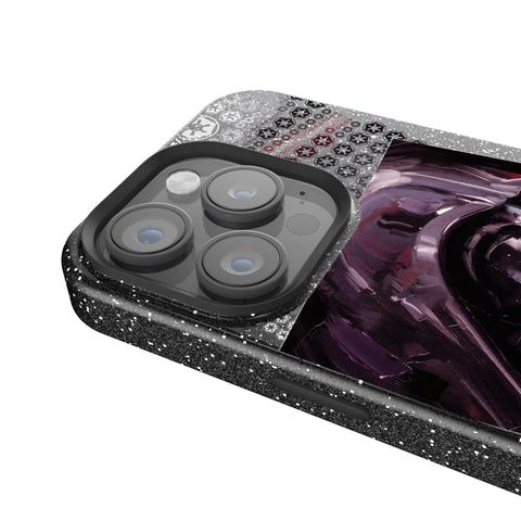 This black, sparkly case with a microfiber interior is officially-licensed and MagSafe compatible. It provides fun and protection to your cell phone. Designed and decorated by Keyscaper in Tualatin, Oregon, USA., this case is exciting and durable. It has precise speaker and port cutouts, easy press buttons, and a raised lip around the screen and camera lens to provide extra protection against accidental bumps and scratches.