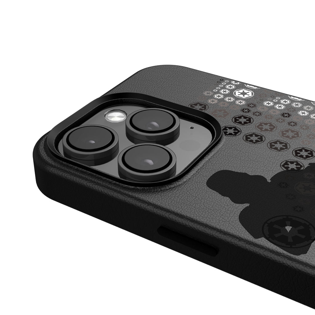 This premium black leatherette case sports an officially-licensed design and is MagSafe compatible. Designed and decorated by Keyscaper in Tualatin, Oregon, USA., this stylish cell phone case is a great way to show off your true fandom. Striking a great balance between bulk and protection, it is durable, has precise speaker and port cutouts, and is compatible with wireless charging devices.
