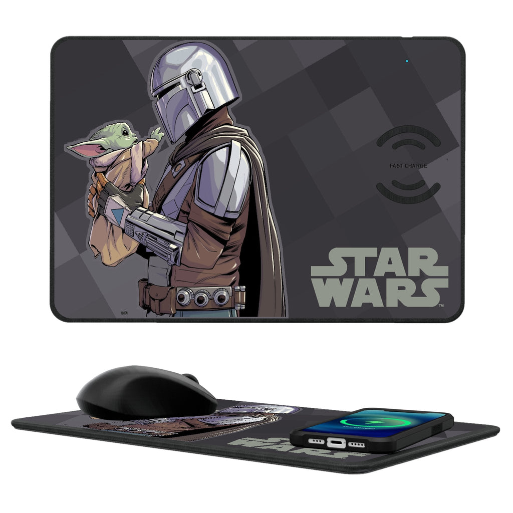 Star Wars: The Mandalorian Grogu and Din Djarin Color Block 15-Watt Wireless Charger and Mouse Pad