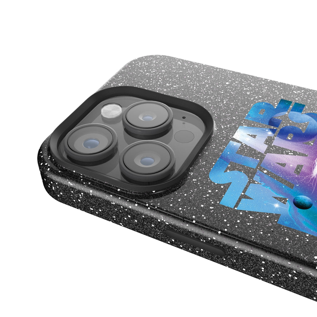 This black, sparkly case with a microfiber interior is officially-licensed and MagSafe compatible. It provides fun and protection to your cell phone. Designed and decorated by Keyscaper in Tualatin, Oregon, USA., this case is exciting and durable. It has precise speaker and port cutouts, easy press buttons, and a raised lip around the screen and camera lens to provide extra protection against accidental bumps and scratches.