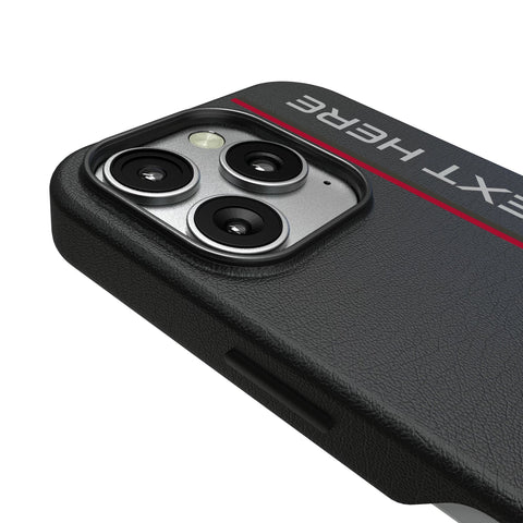 This stylish and practical case sports an officially licensed design and is MagSafe compatible. Ideal for fans, enthusiasts, and everyday users who want a slim, protective, and MagSafe compatible case. Premium black leatherette and anodized aluminum buttons ensure a comfortable grip and great tactile response. Precise speaker and port cutouts and integrated magnets optimize compatibility with accessories and wireless charging devices. It is drop-tested to 4.9 feet for a perfect balance between bulk and protection and is designed and decorated by Keyscaper in Tualatin, Oregon, USA.