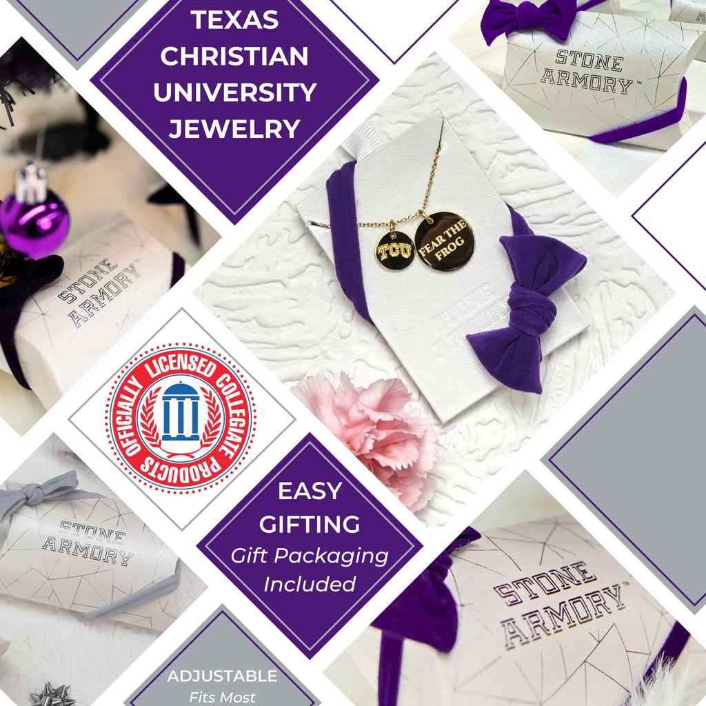 - Designed for Comfort and Elegance: Stone Armory’s TCU jewelry is crafted with premium materials, providing all-day comfort and a sleek design. Designed for sensitive skin, this necklace ensures a comfortable fit for everyday wear. Whether you're searching for a birthday gift, Christmas gift, or Graduation gift, this necklace is a perfect choice for TCU fans