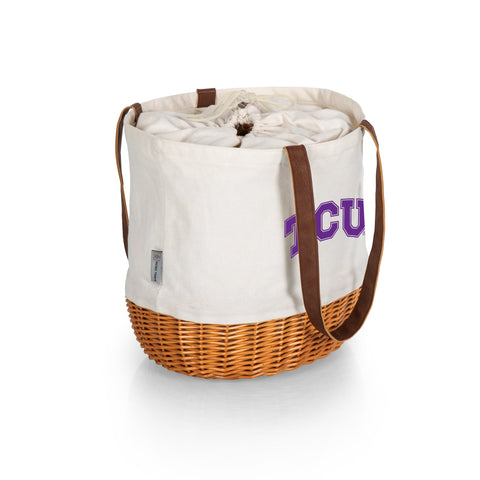 Is it a beach bag? Yes. Is it a picnic basket? Also yes. Is it a tote bag? Y-e-s. Will it be there for you because it's been there before? YES. You may find yourself asking more questions, but let me stop you there, because the answer is, "Yes." Somewhere between a durable picnic tote and a stylish beach bag, the TCU Horned Frogs Coronado Canvas and Willow Basket Tote is the perfect companion wherever you're headed. This tote is three+ bags in one, with a willow wicker bottom, canvas body (in lots of chic colors and patterns), and fully-lined interior. This tote bag for women makes a statement (and fits a sizable wine and cheese picnic) while delivering handy canvas tote convenience everywhere from the grocery to the beach.