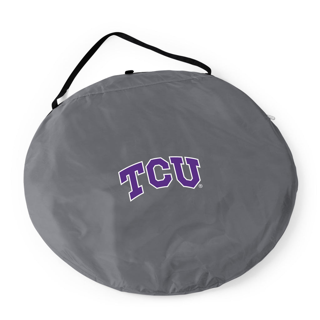 The TCU Horned Frogs Manta Portable Beach Tent is your own pop up cove, shielding you from the elements with a lightweight yet durable polyester shell. When the beach is calling, make sure to take the essentials – like this easy set up beach shelter to keep the sun from frying your skin. This sporty pop-up tent has serious benefits, like a UPF rating of 50+ for sun protection. Simply pop open this fully assembled tent, secure it with the plastic ground stakes or attached fillable sandbags, and Voila! Sunshade in the great outdoors. Plus, the heavy-duty floor keeps you grounded with a water-resistant, easy-to-clean surface for sand-free picnics. It’s more than a tent and it’s the perfect alternative to your standard beach umbrella - it’s the Manta!