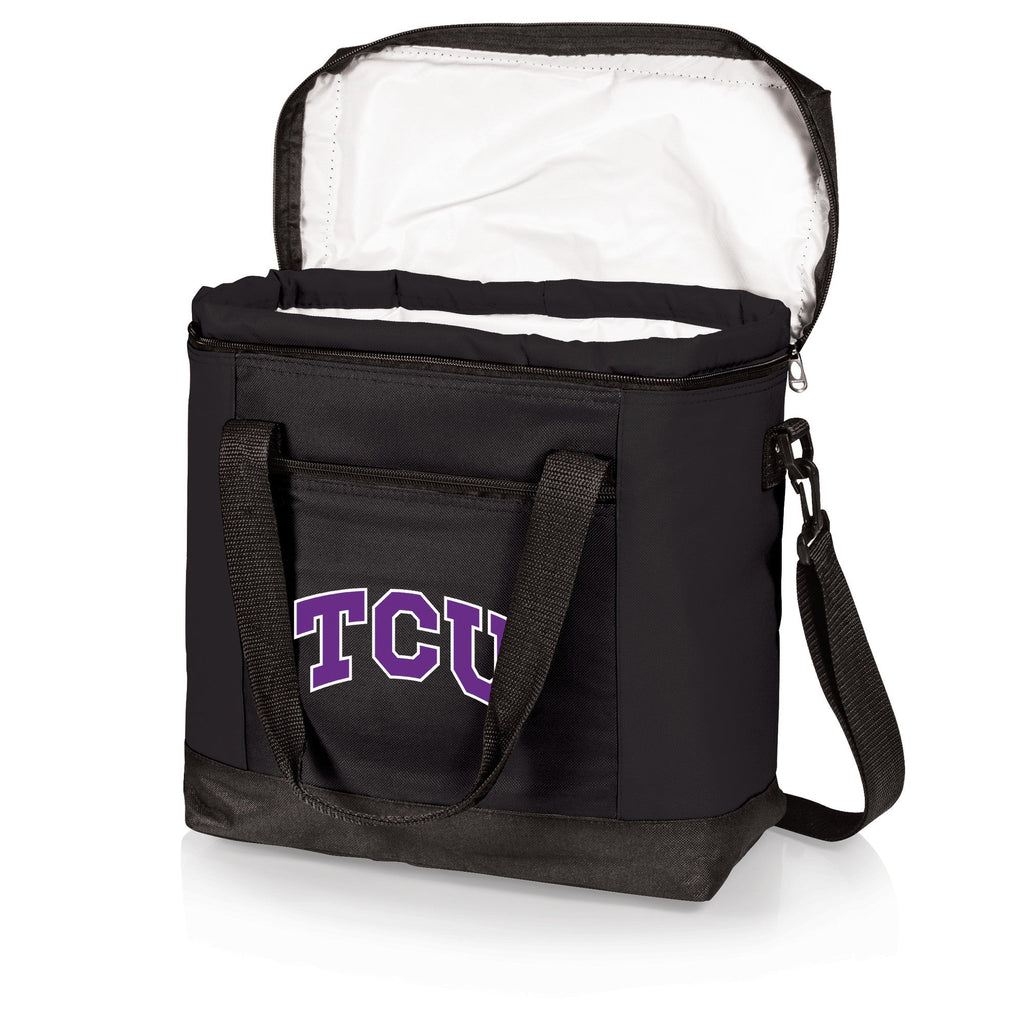 The TCU Horned Frogs Montero Cooler Tote Bag is the ideal combination of grocery bag, picnic cooler, and beach tote bag in one great soft cooler package. With its fully-insulated & durable polyester canvas exterior, insulated water-resistant liner, and 20-can storage capacity, the Montero can take from camping to outdoor concerts to picnics to the beach to the farmers market with ease. Stay comfy no matter how big the picnic with padded carry handles and an adjustable, detachable shoulder strap. This insulated cooler bag has serious versatility - and serious style.
