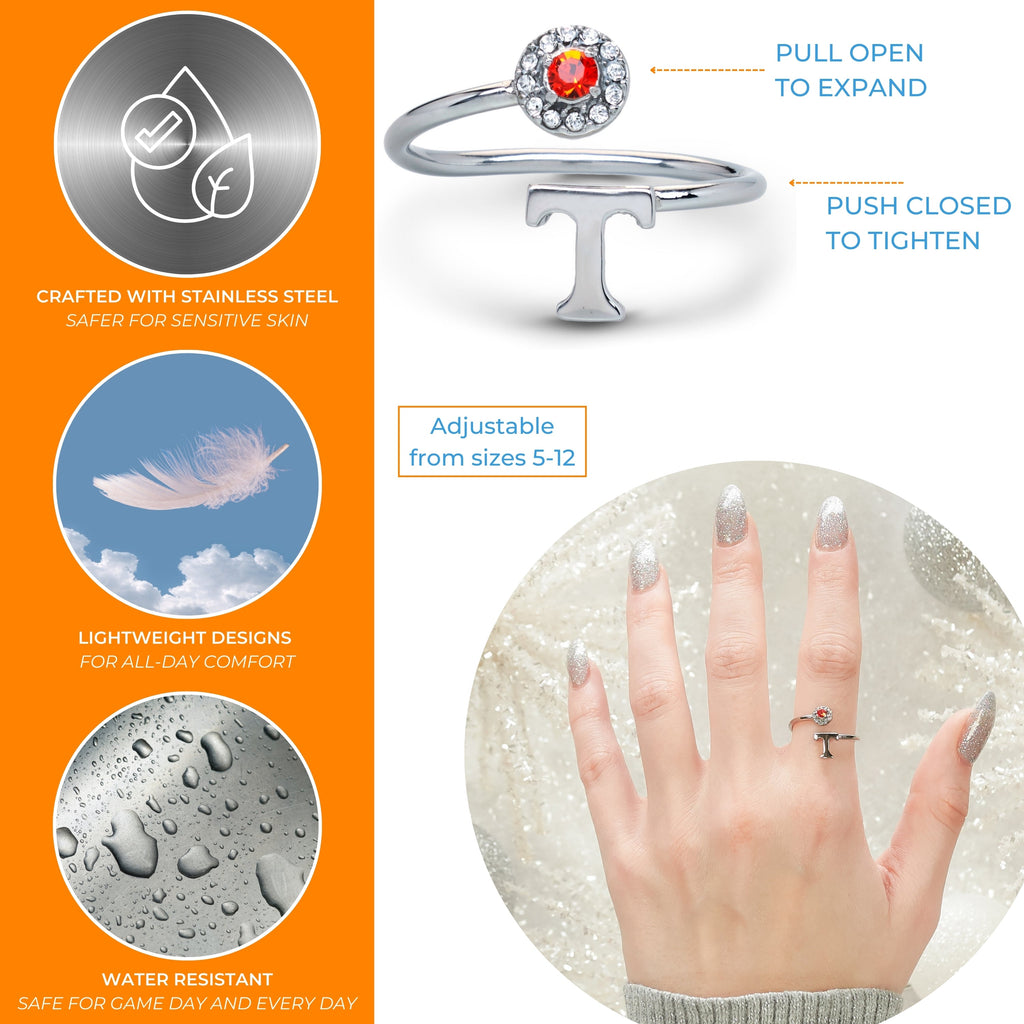 - š§”THE PERFECT University of Tennessee GIFT: This UT Vols ring is adjustable in size and will fit most, making it the perfect womens gift for yourself, Tennessee fans, graduates, students, moms, sisters, daughters and Tennessee alumni. Great gift for Mother's Day, Christmas, birthdays and graduation. Go Vols!