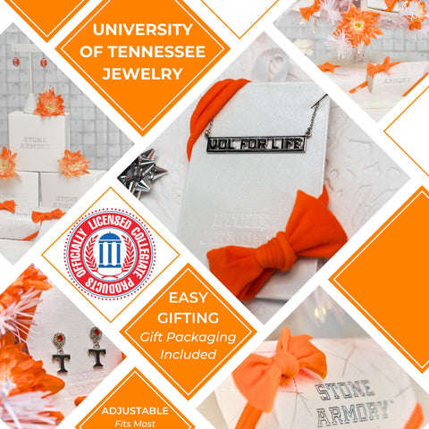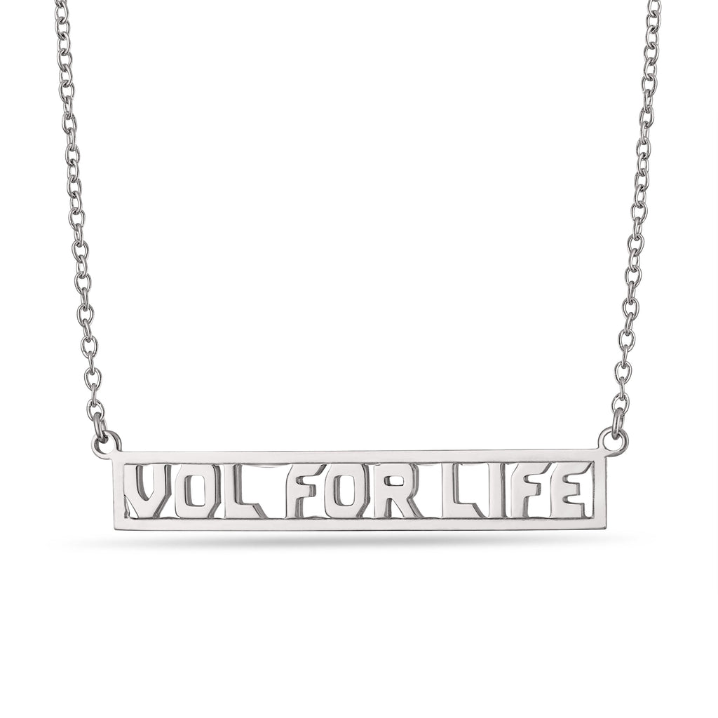 - Treasure Your Tennessee Volunteer Spirit - This University of Tennessee script slogan necklace from Stone Armory is full of Volunteer Pride! Featuring the words VOL FOR LIFE in an open bar design, this Tennessee necklace is just as unique as you. Go Vols!