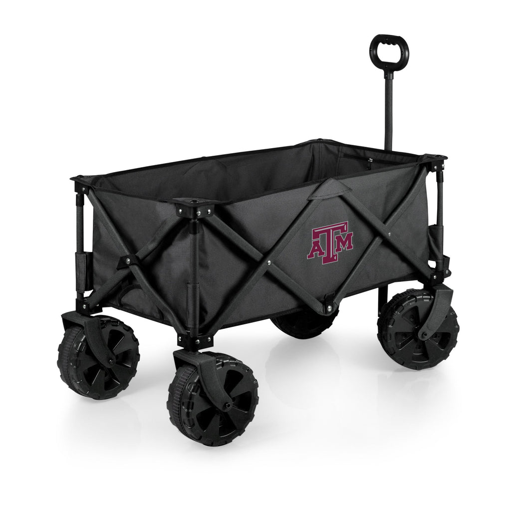 Save your back on and off road with the Adventure Wagon Elite All-Terrain Folding Beach Wagon with Big Wheels plus Table Top Lid & Soft Cooler Liner, a sturdy utility wagon with endless uses, thoughtful accessories, and a rugged 225 weight capacity. With a powder-coated steel frame and durable two-tone polyester canvas for hauling everything you need, this all terrain luxury trolley can take you everywhere from beach picnics to camping to shopping for groceries at your local farmer’s market. The ultra big wheels make this garden wagon ideal for hikes, camping and any off road picnic adventures. This folding wagon packs away compactly, sets up easily, and has a telescoping handle for ease of use. A zippered, hanging storage pocket inside the beach wagon cart is perfect for your phone and other delicate items. But wait - that’s not all! The food-safe PVC soft cooler liner features a drainage spout for melting ice so you can convert your outdoor folding wagon to a rolling cooler. Also included is a sturdy polyester-covered table top lid for tailgates and picnics anywhere. Is there anywhere this sport utility wagon can’t go?! Honestly...no!