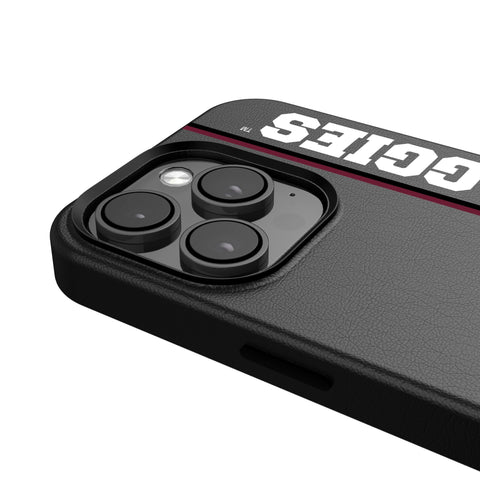 This premium black leatherette case sports an officially-licensed design and is MagSafe compatible. Designed and decorated by Keyscaper in Tualatin, Oregon, USA., this stylish cell phone case is a great way to show off your true fandom. Striking a great balance between bulk and protection, it is durable, has precise speaker and port cutouts, and is compatible with wireless charging devices.