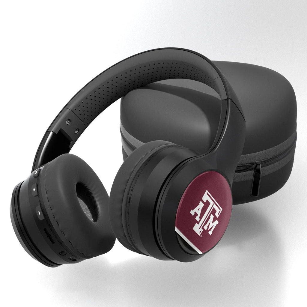 Texas A&M University Aggies Stripe Wireless Over-Ear BT Headphones With Case