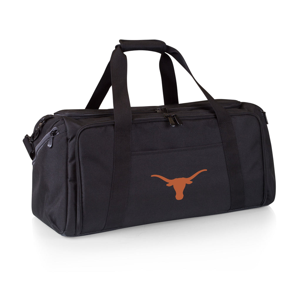 Bring the best of both worlds with the BBQ Kit Cooler, a highly-portable and heat-sealed, 46-can capacity cooler with an attached zippered pocket containing an 8-piece stainless steel grill set including: one BBQ knife, one BBQ spatula, one set of tongs, a salt and pepper shaker set, one BBQ mitt, one hardwood cutting board, and one waiter-style corkscrew. The extra pockets, tool box-style carry handles, and an adjustable shoulder strap make this the perfect gift for the roaming grill master in your life. Fire it up!