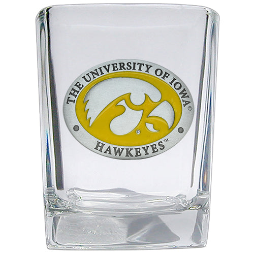 This 1.5 ounce square shot glass is highlighted with a fine pewter casting. Made in USA.