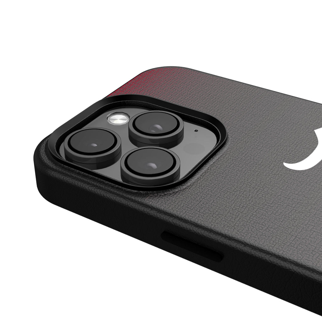 This premium black leatherette case sports an officially-licensed design and is MagSafe compatible. Designed and decorated by Keyscaper in Tualatin, Oregon, USA., this stylish cell phone case is a great way to show off your true fandom. Striking a great balance between bulk and protection, it is durable, has precise speaker and port cutouts, and is compatible with wireless charging devices.