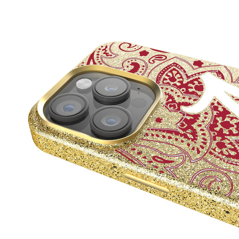This gold, sparkly case with a microfiber interior is officially-licensed and MagSafe compatible. It provides fun and protection to your cell phone. Designed and decorated by Keyscaper in Tualatin, Oregon, USA., this case is exciting and durable. It has precise speaker and port cutouts, easy press buttons, and a raised lip around the screen and camera lens to provide extra protection against accidental bumps and scratches.