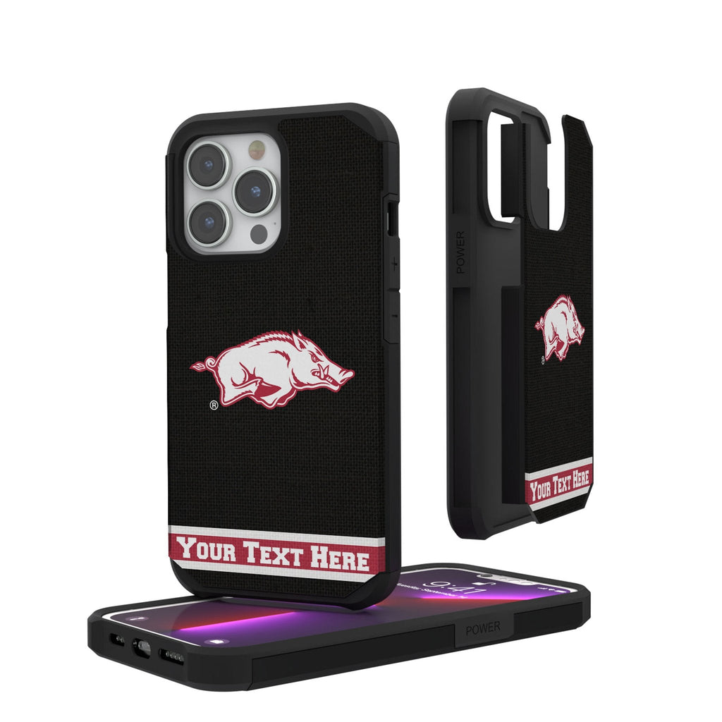 University of Arkansas Fayetteville Razorbacks Personalized Stripe Rugged Phone Case for Apple iPhone