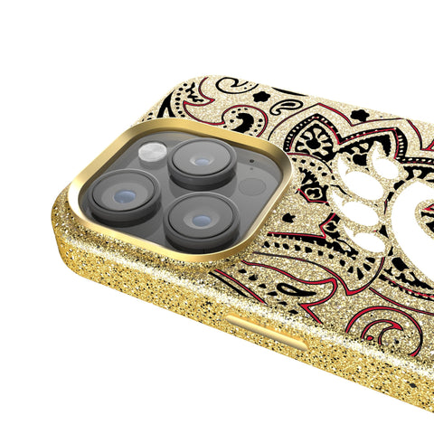 This gold, sparkly case with a microfiber interior is officially-licensed and MagSafe compatible. It provides fun and protection to your cell phone. Designed and decorated by Keyscaper in Tualatin, Oregon, USA., this case is exciting and durable. It has precise speaker and port cutouts, easy press buttons, and a raised lip around the screen and camera lens to provide extra protection against accidental bumps and scratches.