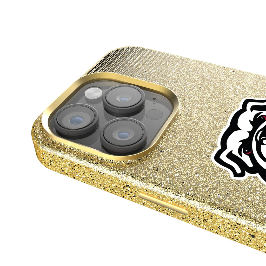 This gold, sparkly case with a microfiber interior is officially-licensed and MagSafe compatible. It provides fun and protection to your cell phone. Designed and decorated by Keyscaper in Tualatin, Oregon, USA., this case is exciting and durable. It has precise speaker and port cutouts, easy press buttons, and a raised lip around the screen and camera lens to provide extra protection against accidental bumps and scratches.