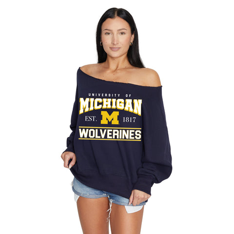 This super flattering Michigan Oversized Sweatshirt is perfect for college game day or class. Our Michigan Sweatshirts's ultra soft fabric makes it the most comfortable sweatshirt to wear anytime.