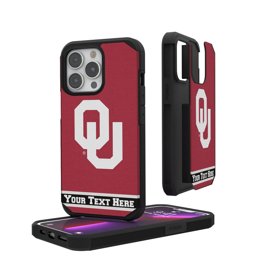 University of Oklahoma Sooners Personalized Stripe Rugged Phone Case for Apple iPhone