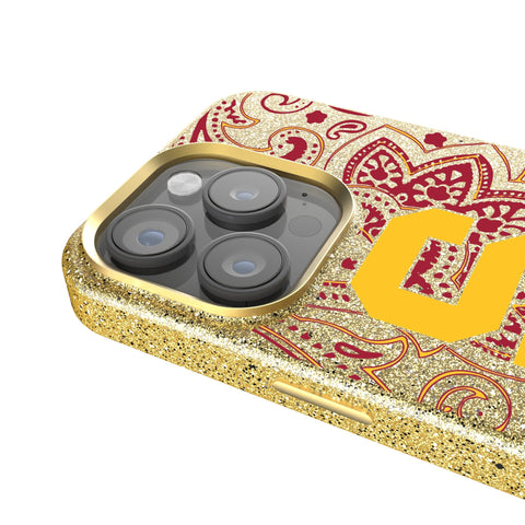 This gold, sparkly case with a microfiber interior is officially-licensed and MagSafe compatible. It provides fun and protection to your cell phone. Designed and decorated by Keyscaper in Tualatin, Oregon, USA., this case is exciting and durable. It has precise speaker and port cutouts, easy press buttons, and a raised lip around the screen and camera lens to provide extra protection against accidental bumps and scratches.