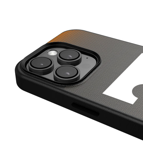 This premium black leatherette case sports an officially-licensed design and is MagSafe compatible. Designed and decorated by Keyscaper in Tualatin, Oregon, USA., this stylish cell phone case is a great way to show off your true fandom. Striking a great balance between bulk and protection, it is durable, has precise speaker and port cutouts, and is compatible with wireless charging devices.