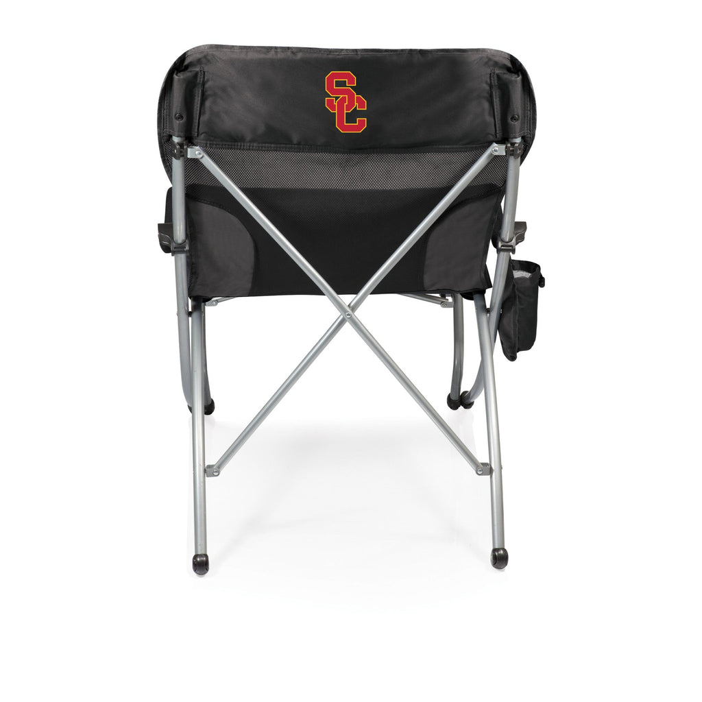 Even if you're not a linebacker, you'll enjoy the extra room of the USC Trojans PT-XL Heavy Duty Camping Chair, an outdoor chair with an extra-wide polyester canvas-constructed seat in a durable ripstop weave. This XL camp chair also features a breathable backing, padded armrests, a hanging beverage pocket, and a sturdy, powder-coated steel frame that folds inward to fit in a drawstring carrying bag with shoulder strap. This big and tall folding beach chair is the perfect place to post up for a day at the beach, camping, picnicking, or on your porch! With a high weight capacity of 400lbs, this outdoor folding chair is the heavy duty choice for secure comfort on the go. Made especially for big men and women, this plus size beach chair is comfortable, portable, and affordable - a real XXL dream!