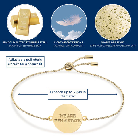 - Sport your Nittany Lion Spirit in Style with this Exquisitely Crafted Penn State Bracelet : Treasure your Penn State Nittany Lion Spirit with this Penn State adjustable bolo chain bracelet for women and men; this Penn State University bracelet features an engraved 'We Are Penn State' charm design on an 18K gold plated stainless steel bracelet